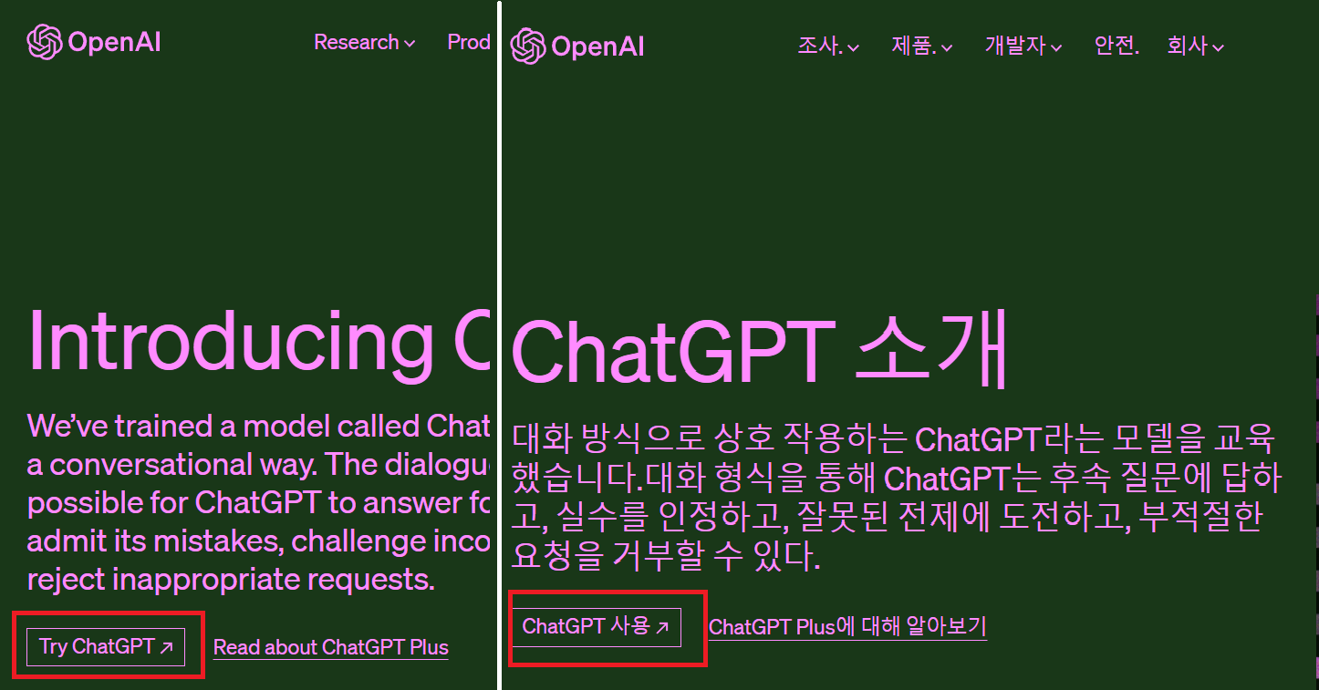 인터넷으로 검색을 해 보면 너무나도 많은 Chat GPT 가 올라옵니다. 그 중 openai.com을 확인하고 클릭을 합니다.